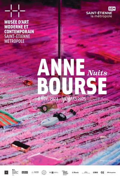 Lauréate de la 11e édition du Prix des Partenaires du MAMC+ dédié aux arts graphiques, Anne Bourse a conçu, pour sa première exposition personnelle dans un musée en France, un ensemble de nouvelles œuvres. Sous l’intitulé « Nuits », elle invente un monde aux marges de la fiction, habité par une chambre de gardien, au milieu de maquettes, de bancs et d’étagères de display. Dans cet espace de projection mentale, teinté de mélancolie, s’entrecroisent des sentiments opposés d’intimité et d’éloignement. À l’instar d’une conteuse, Anne Bourse entretisse ses histoires et ses créations. Avec ses tissages aux fils dorés et argentés, elle fait écho à la tradition industrielle de la rubanerie stéphanoise, mais souligne surtout l’analogie centrale dans sa démarche entre trame textile et ligne dessinée.